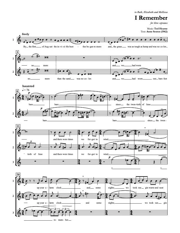 premiere October 2007, Elizabeth Baber, Ruth Cunningham, Mellissa Hughes, sopranos; Brooklyn Lyceum