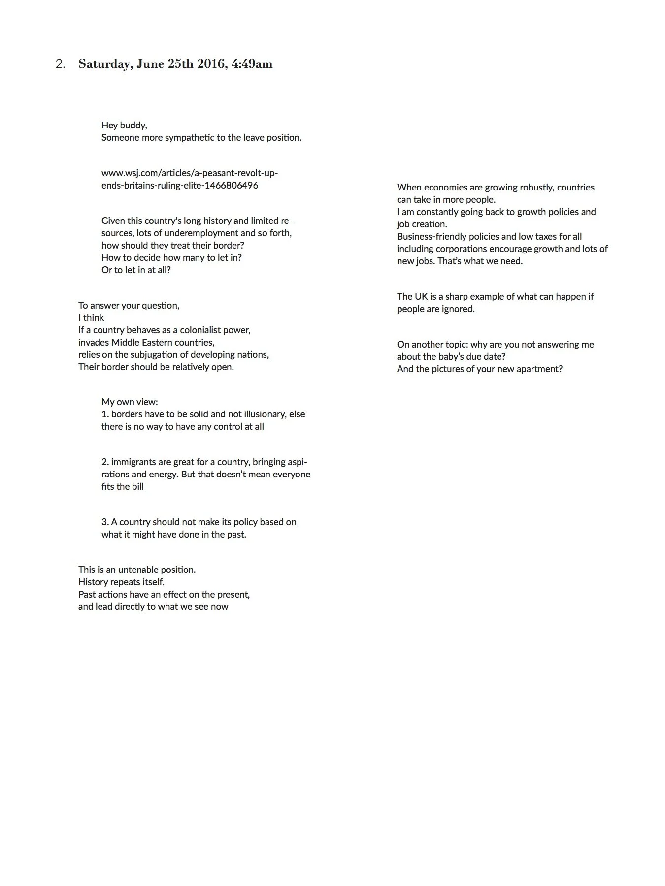 Drawn from personal sources, the piece speaks to fatherhood, familial responsibility, polarization, communication, borders and identity.